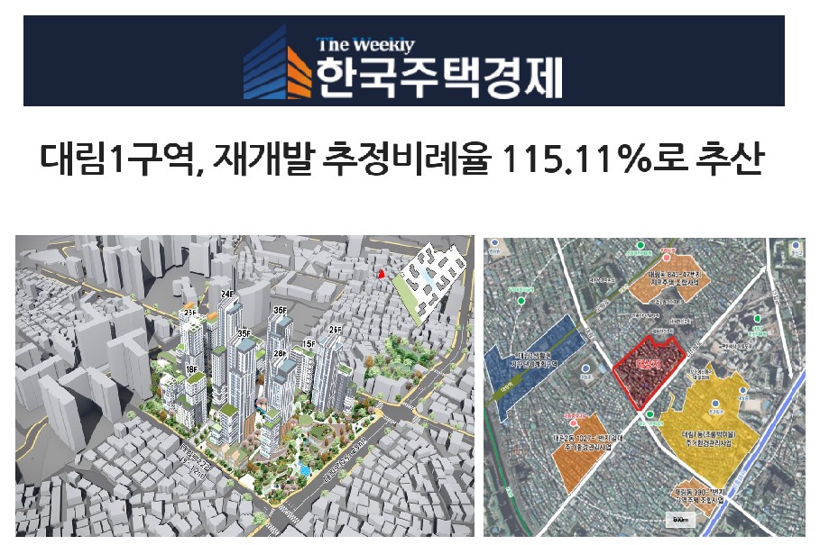 대림1구역, 재개발 추정비례율 115.11%로 추산 최고 35층 아파트 1,026세대 건립▲ ...